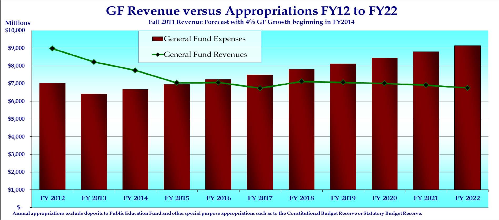 Two charts from the most recent 10-year forecast by the State’s Office of Management and Budget tell the story.